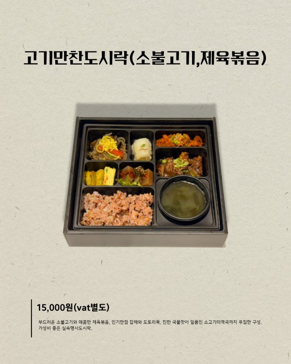 고기듬뿍담은 에이진 고기만찬 도시락 많은 이용 부탁드립니다.